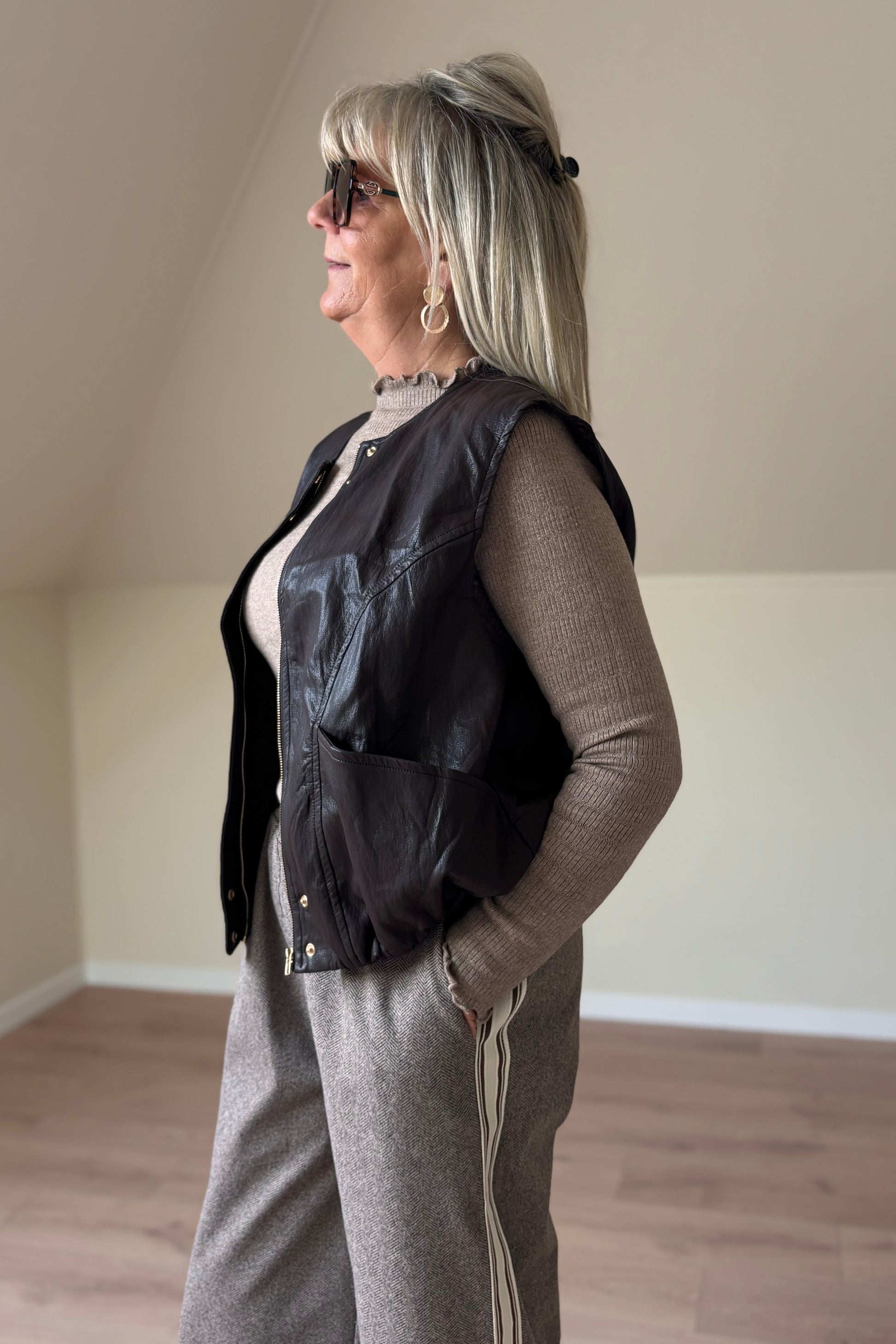 Mouwloos lederlook jasje. Voor een stoerdere stijlvolle look!